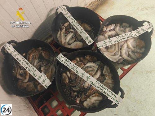 Intercepción de 104 kilos de pulpo en Lorbé durante traslado a camión.