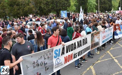 Protesta en San Caetano por la mina de San Finx, considerada un desastre medioambiental y culpa a la Xunta.